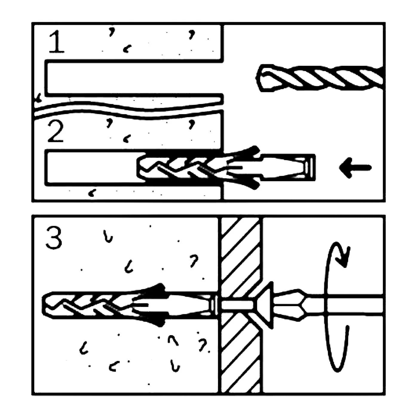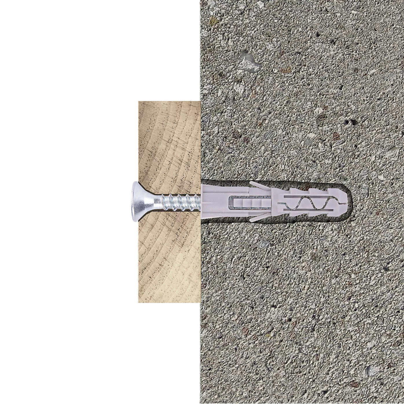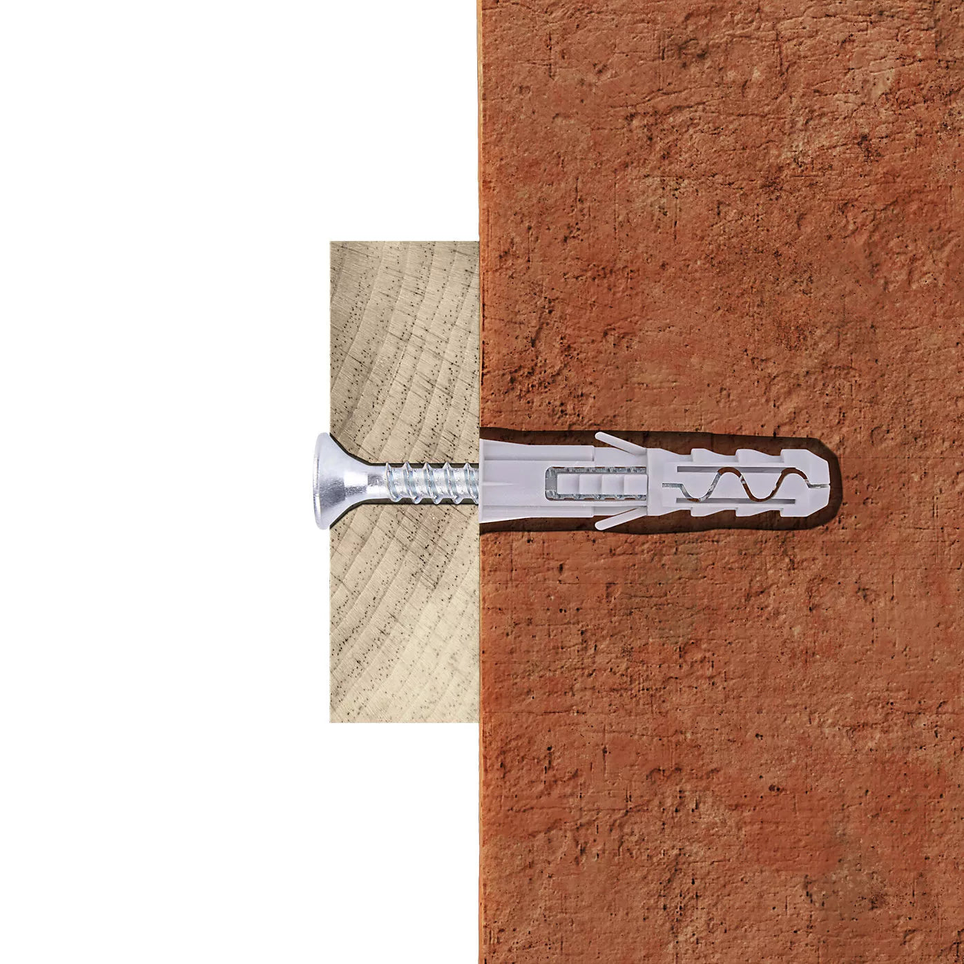These Diall Grey Nylon Wall Plugs (6mm x 30mm) in a pack of 100 are a durable and versatile solution for securing fixtures in solid substrates such as brick and concrete. Made from high-strength nylon, this plug features a two-way expansion mechanism for enhanced anchorage and anti-rotation fins to prevent spinning during screw tightening, providing a secure, long-lasting hold.