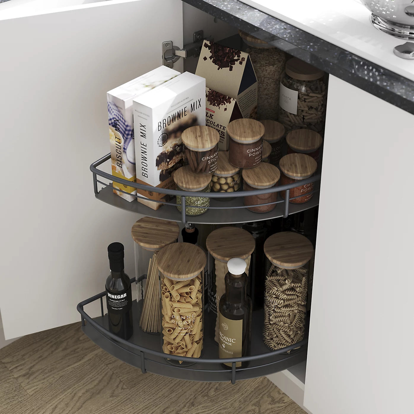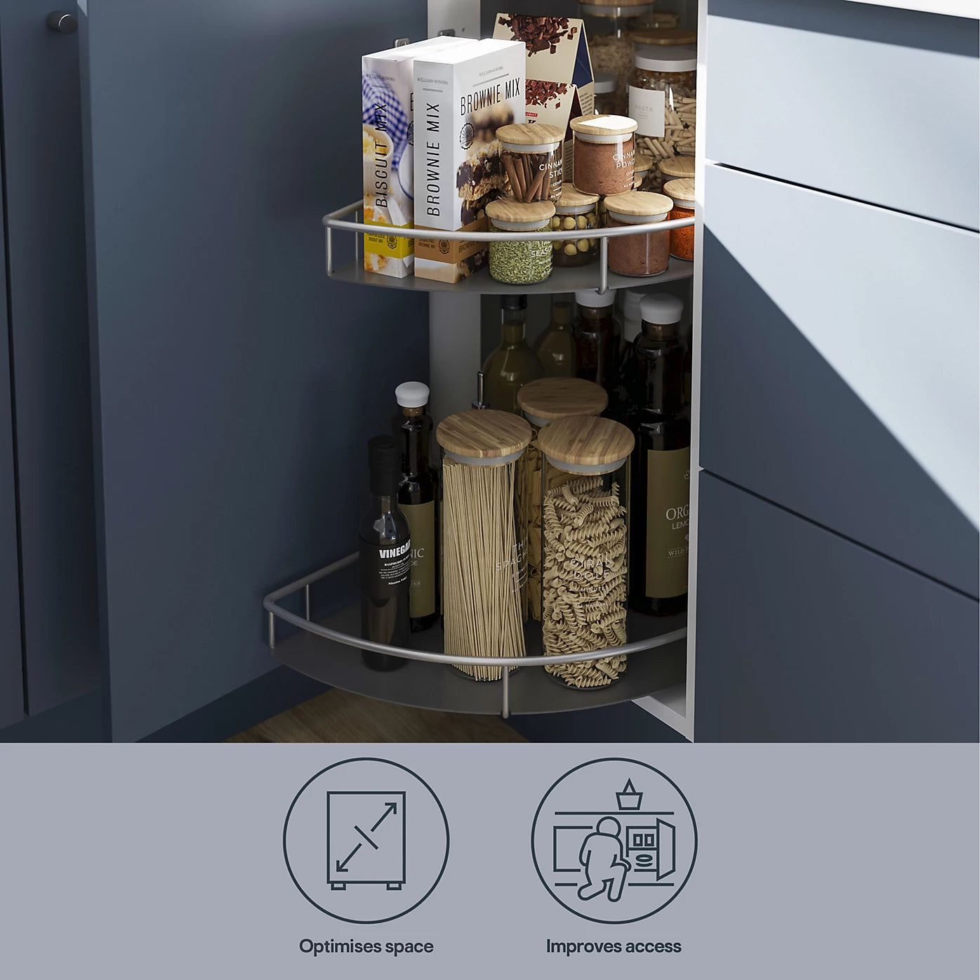 GoodHome Pebre Grey Not soft-close Half moon carousel 80cm Storage system