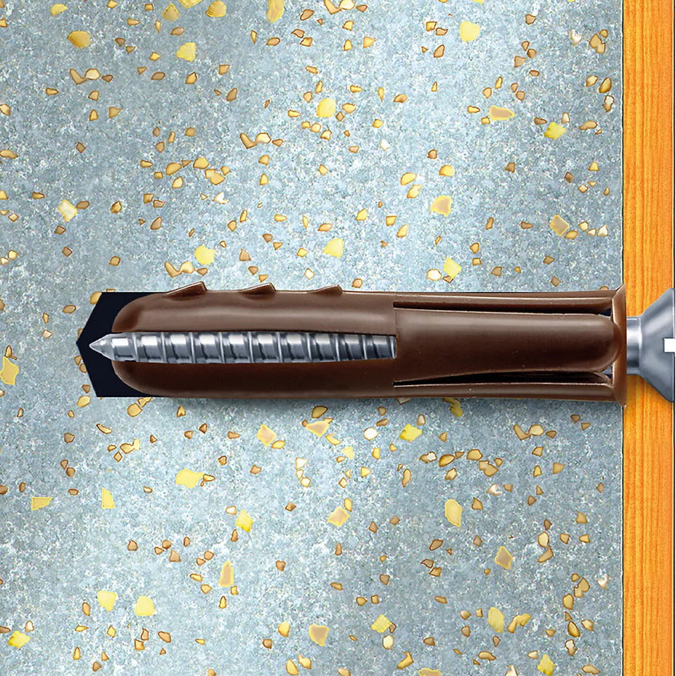 The Plasplugs Super Grips Brown Multi-Purpose Fixings are a reliable and versatile solution for securely mounting fixtures in solid walls. Designed for brick, concrete, and stone, these heavy-duty fixings feature expanding barrels with six grip points for superior hold. Ideal for shelving, curtain poles, lighting, hooks, and brackets, this pack of 500 fixings ensures you have all you need for your projects.