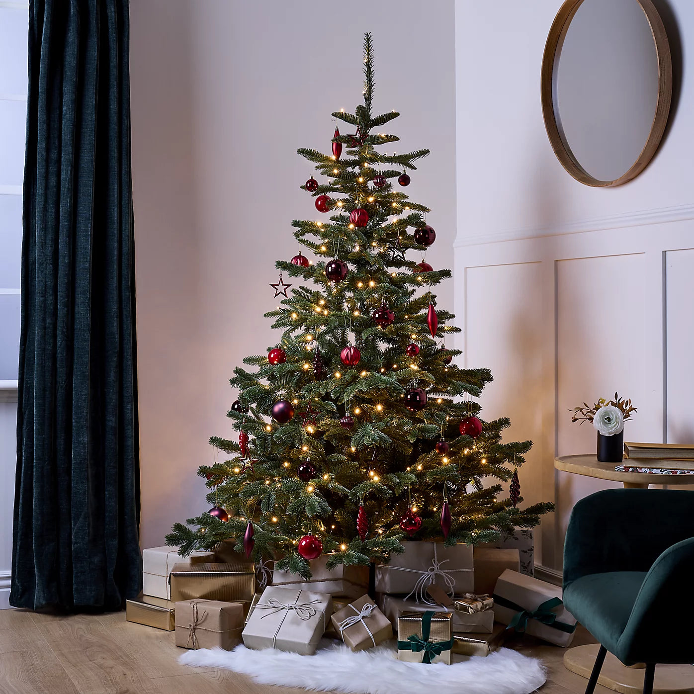 Add classic festive colour to your Christmas tree with this pack of 40 bold red plastic hanging decorations, perfect for traditional holiday styling.